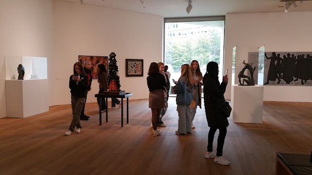 C’est à Luxembourg, capitale Européenne, qu’ils ont passé cette journée sous le signe de la culture et de l’Europe. La première étape était le Musée d’Art Moderne (MUDAM), où les attendait l’exposition « The Dante Project», qui réunissait les œuvres originales créées par l’artiste Britannique Tacita Dean pour les décors du ballet contemporain présenté pour la première fois en octobre 2021 à Londres. En petits groupes guidés par un professeur, ils ont fait le voyage sur les traces de Dante, dans La Divine Comédie, s’interrogeant sur l’interprétation proposée par l’artiste de l’enfer, du purgatoire et du paradis. La deuxième exposition « Face to face » a été une autre confrontation avec l’art sous différentes formes provenant de pays et époques différentes.